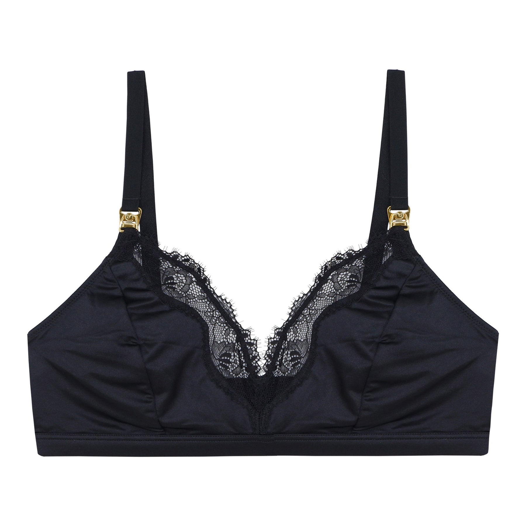 Vår amnings-bh Erica i svart är tillverkad av mjuk, stretchig satin för ultimat komfort. Amnings-bh:n har breda axelband och en resår i midjan för optimalt stöd, kombinerat med spännen som är lätta att öppna före amning. Matcha med Erica String eller Erica Briefs för ett komplett set.